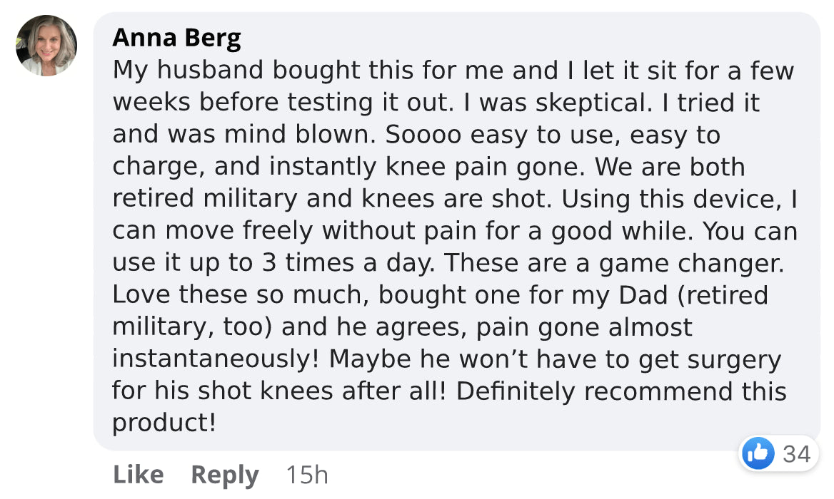 I purchased this for my mother who has battled osteoarthritis knee pain for over two decades. I wanted something easy to use at home and portable for her travels. When I tell you she walked for 30 minutes, repeatedly saying "Wow... I had no idea..." - it was incredible to witness. This product delivers on all its promises. My mother experienced a dramatic reduction in her knee pain after just one use. Two days later, she told me the pain hasn't returned to its previous intensity. I highly recommend this product for anyone dealing with osteoarthritis knee pain.